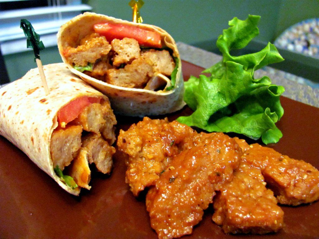 středa 29.4. - Seitan gyros wrap, pečený seitan, dresink z černého pepře, šťouchané brambory, salát
