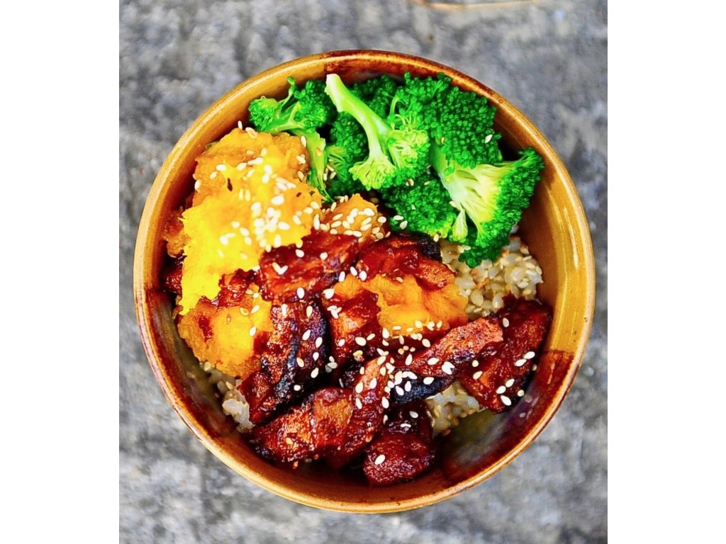úterý 24.3. - Buddha bowl Teriyaki seitan, rýže quinoa, batátové pyré, edamame se zeleninou, sezam